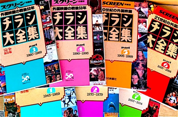 『チラシ大全集』はその名の通り、日本で劇場公開された外国映画のチラシを年代別にひたすら並べたもの。現在のところ7冊が発行されていて、「1945〜1969」「1970〜1979」「1980〜1989」「1990〜1995」「1996〜1999」「2000〜2006」「2007〜2014」とシリーズ化されている。