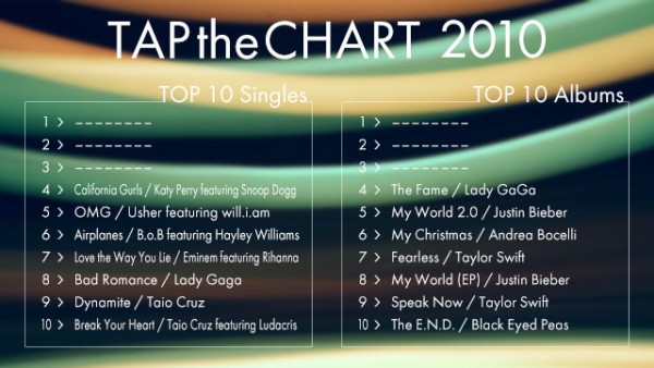 「TAP the CHART」第49回は、2010年を取り上げます。まずはシングルとアルバムの年間チャートTOP 10から。
