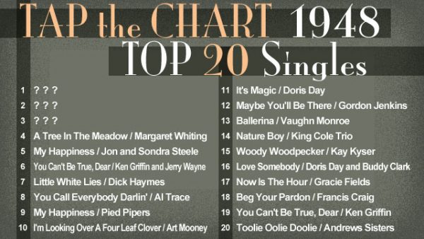 「TAP the CHART」第90回は、1948年を取り上げます。まずはシングルの年間チャートTOP 20から。